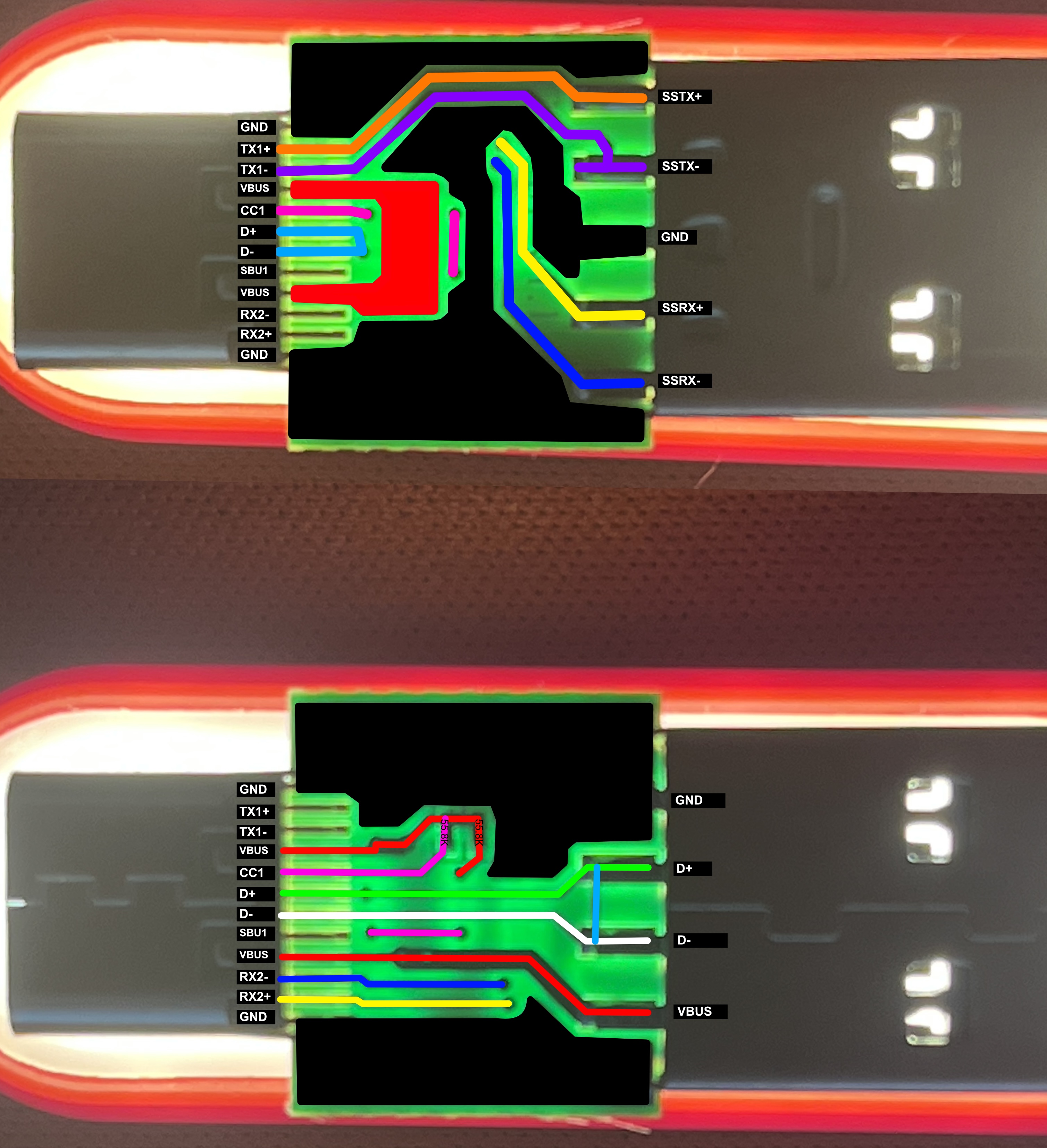 So why connect them at all? The USB Type-C specification expects certain pins to be present and properly terminated for correct operation. Some USB-C devices or charging protocols check for the presence of these lines as part of their cable detection or validation process. Additionally, leaving high-speed differential pairs floating (unconnected) can sometimes cause electrical issues or prevent proper USB-C negotiation. By connecting them through, even though no data can flow, the device maintains better electrical compliance with USB-C standards and avoids potential edge cases where a device might refuse to charge due to unexpected pin states.